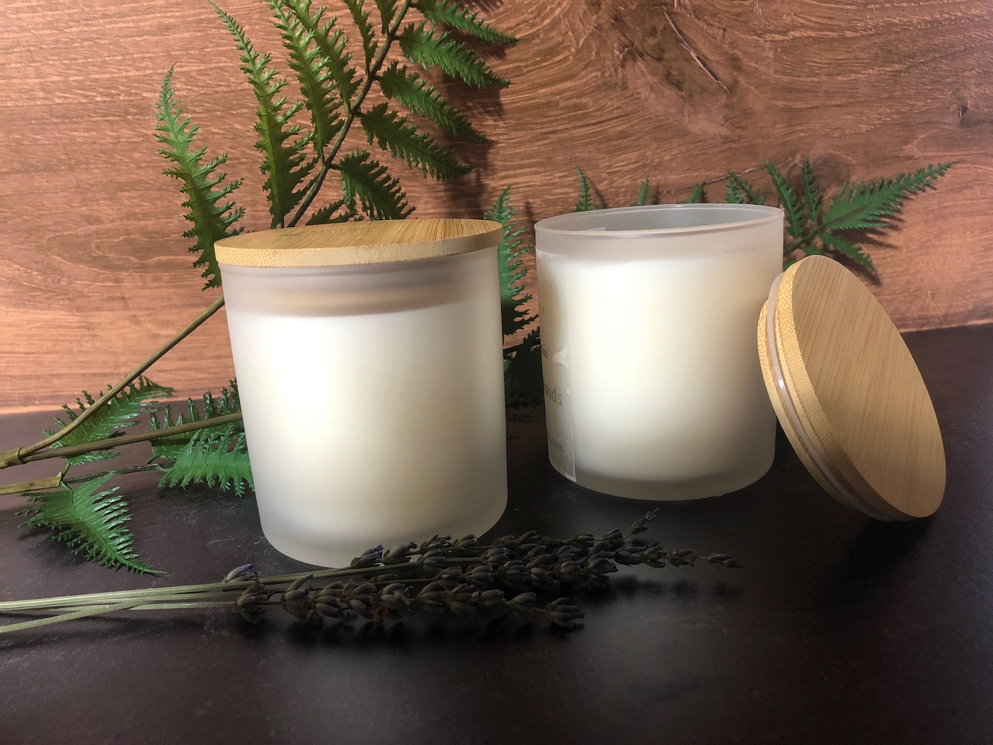 Our spa candle collection is made with a soy blend wax and natural fragrances. These 8 oz candles are hand poured in a luxury frosted glass tumbler and have a bamboo lid. The labeling is understated to allow these candles to mix with any decor.